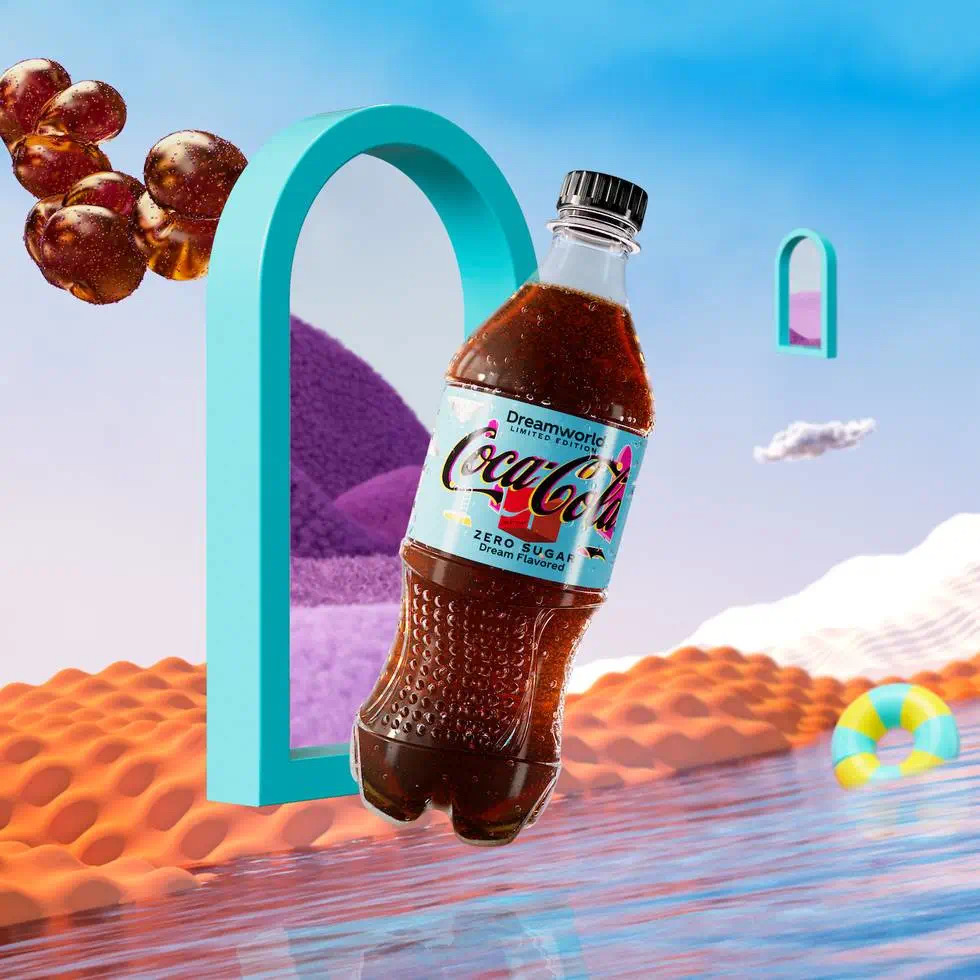 后有可口可乐宣布推出新口味,这次的味道是——Dreamworld“梦境”。先来看一下其AR音乐体验预告物料设计。