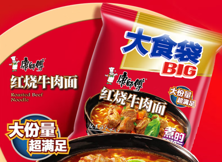大份量方便面:大份量产品康师傅1倍半上市新口味“番茄鸡蛋牛肉面”,实现销量快速增长。此外,BIG桶/大食袋也实现销额稳步增长。