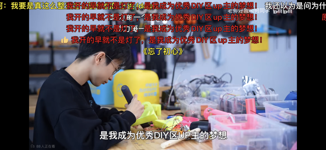 这个与往期视频风格迥异的视频,不仅仅是因为商单的存在,更大的原因在于何同学想要成为优秀DIY区UP主的梦想,从这个视频的弹幕中能够看到更多的网友还是调侃他的这句话。