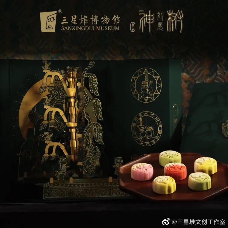 礼盒以三星堆经典的青铜墨绿色调渲染