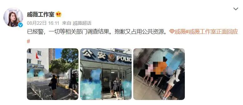 事件持续发酵后,戚薇工作室在微博发文表示已经报警,称“一切等相关部门调查结果。”