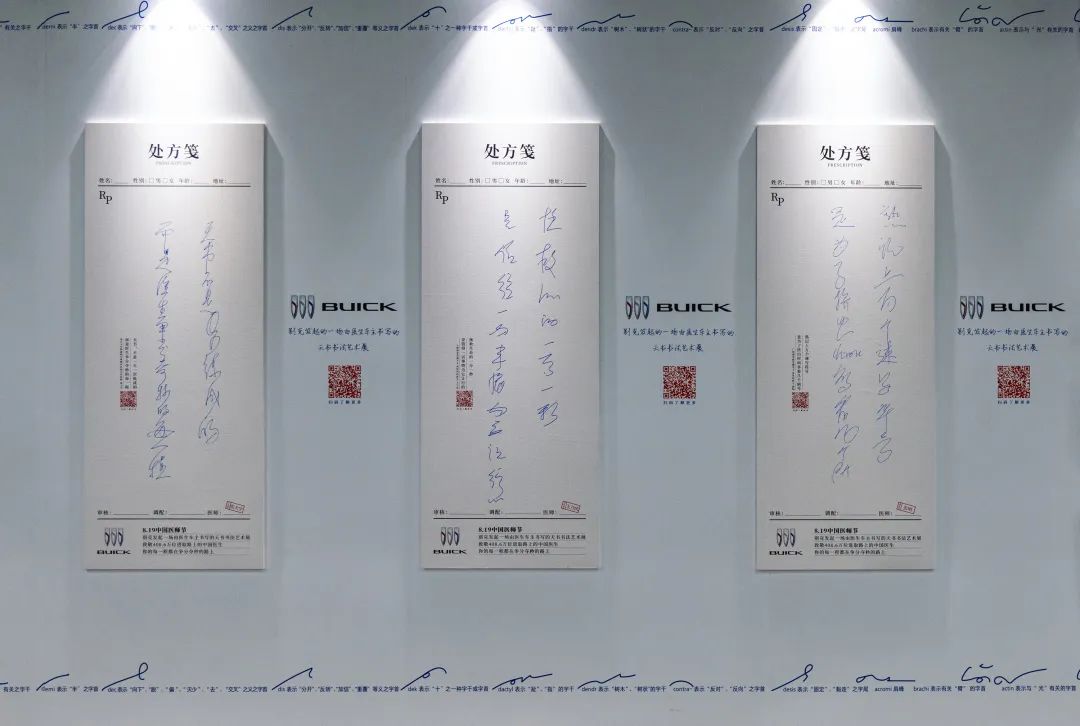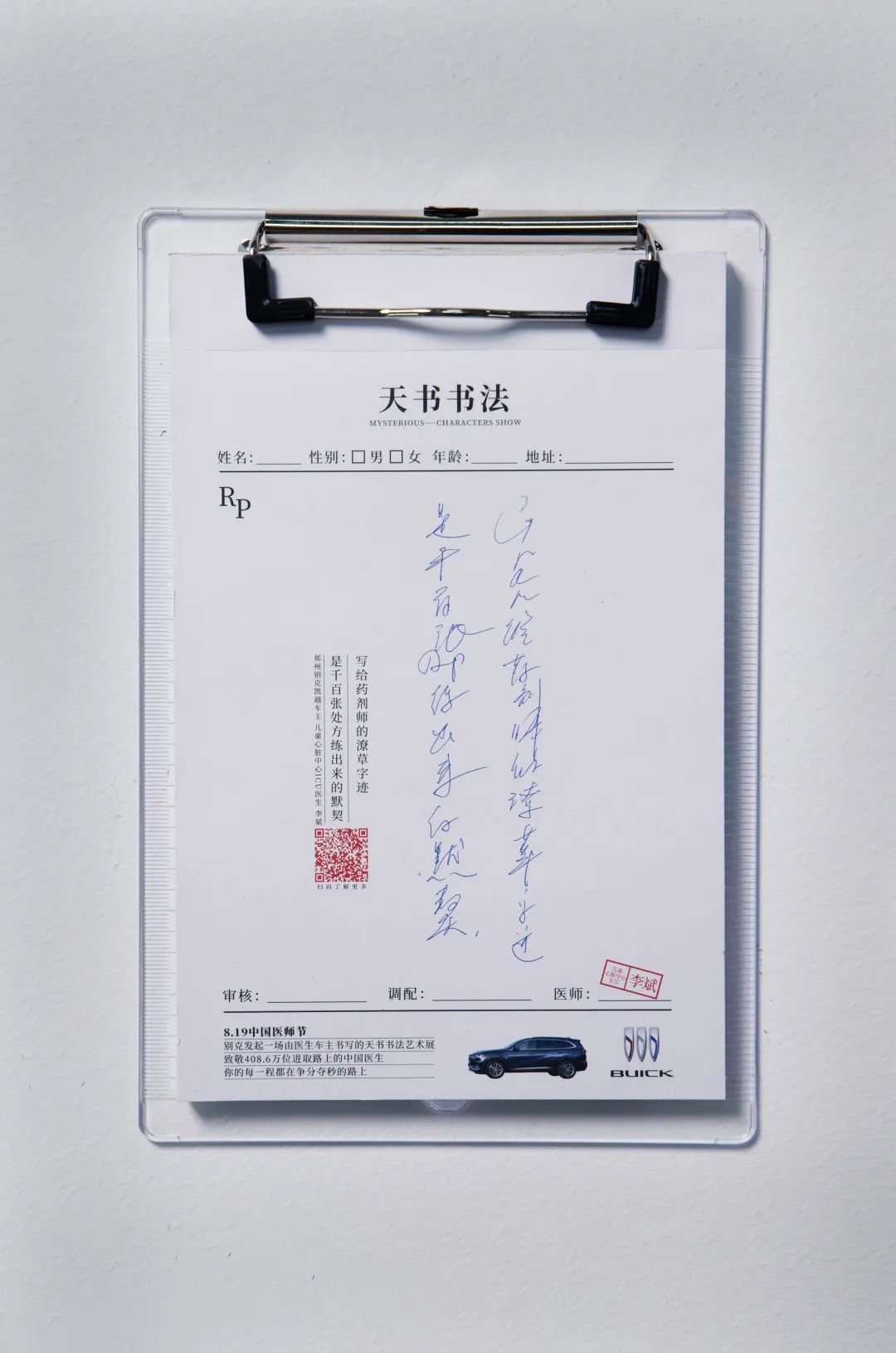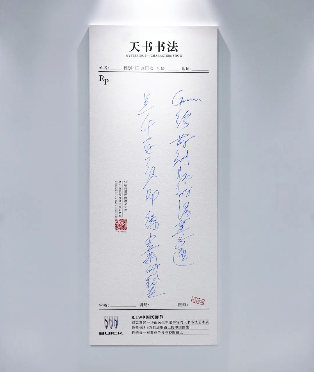 天书书法展,借别克医生车主之手,通过“天书”书法这种既特别又和医生强相关的形式,让医生的忙碌日常变成一幅幅公共艺术作品,被更多人看到。
