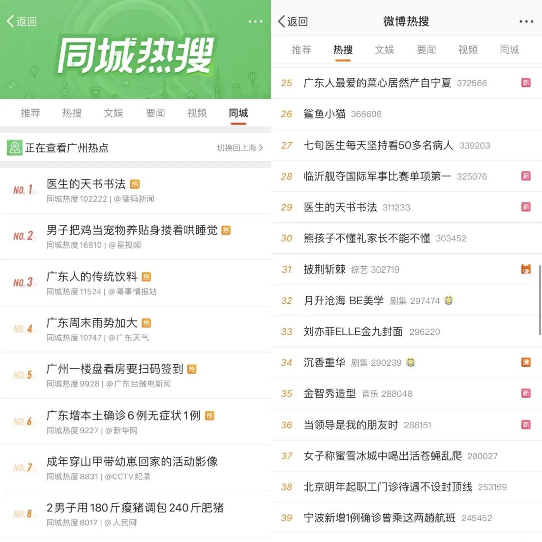 8.19中国医师节当天,短短几个小时时间,微博话题#医生的天书书法#冲上同城热搜榜第一名,微博全国热搜榜第29名。数据还在持续攀升……