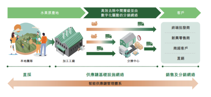 水果为典型的非标准化产品,种植端和零售端均较为分散。在种植端,由于受天气状况及种植技术影响,难以确保统一的水果种植。在层层的分销环节,采摘、分选、包装、保鲜、储存、运输等可能由于多家参与者参与,品控不一、运作程序标准不一导致水果损腐率居高不下。因此,从产业角度来看,水果行业的本质上是“基于全产业链运营的鲜度经营”。如何建设出一个高效的供应体系,无疑是赛道内玩家们的核心命题。而可以看到的是,凭借多年的经验积累,洪九果品走出了一条可行的路。在采购环节上,洪九果品坚持“找遍全球,唯有此地”。洪九果品招股书透露,其在采购环节提升原产地直采比例,组建东南亚工厂及400多个当地团队,保证上游果品供应稳定性。从数据看,2021年,公司从种植基地和果园直采的比例高达近70%,并仍在快速提升。在分拣环节上,洪九果品在海外市场设立了16个水果加工厂,在全国配备60个智能分拣中心。在产地完成分拣、包装,不但能第一时间确保产品质量,也能够提升物流效率,从而降低损耗。在分销环节上,截至2022年5月底,洪九果品在全国设立了19家销售分公司,辐射全国300个城市,洪九果品改变过去传统的层层批发结构,将新鲜水果直接配送到全国各地的商超、社区团购大仓、生鲜专卖店等零售终端,在提高利润的同时进一步实现了果品损耗率的降低,2021年,洪九果品的损耗率仅为1.3%,为行业领先水平。通过在水果产地深入布局,建立选品、加工工厂,选择稳定可靠的物流,并严格管控货柜在途情况,最终通过不同渠道分销至终端。这样“端到端”的供应链模式,是洪九果品成为行业龙头的成功密码,也是未来持续竞争的关键部分。当然,任何标准化的供应链都需要对应的管理系统,只有两者相互配合,才能实现效率的不断提高。传统供应链多是长链条式结构,中间环节过多,导致用户需求反馈不及时,出现信息传递的迟滞或错误,从而供需之间不匹配,库存问题明显。而随着“互联网+”行动计划的铺开,互联网将不断颠覆传统果品产业的组织形式、商业规则、产业链条、竞争格局,延伸出很多新的商业模式、销售模式。在实现业务全供应链覆盖后,洪九果品也搭建了独立的数字化驱动供应链管理系统“洪九星桥”。凭借这一管理系统,洪九果品能够有效收集产、运、销全产业链数据,然后根据客户需求时效、市场行情、物流费用波动等灵活地制定物流组合方案。具体到一些环节,“洪九星桥”能规划出最佳到港口岸时间和最佳市场投放时间,减少因市场价格波动及产品质量变差带来的风险,在保证物流质量及低损耗率的同时实现效益最大化。可以说,洪九果品正以“互联网+”的方式,重构果品行业竞争格局,打开果品产业发展的新时代。