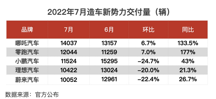 据中国汽车流通协会汽车市场研究分会(乘联会)7月份的零售销量数据统计,哪吒汽车7月份的销量已经达到12655台,超过了蔚小理在当月的销量。