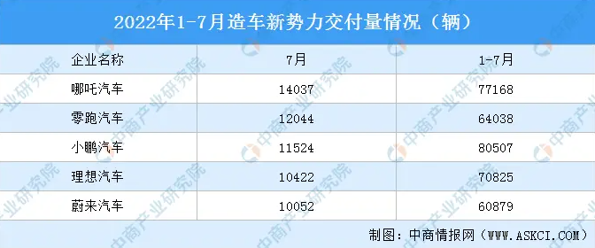 2022年7月,零跑汽车共计交付12044辆,同比增长超177%,超越“蔚小理”,位居中国新势力造车月销榜第二。