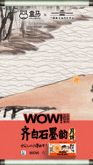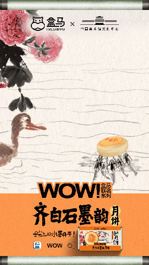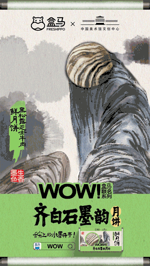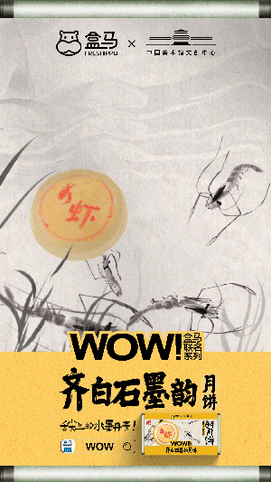在注意力稀缺时代,品牌需要令人眼前一亮的创意广告,才能实现声量传播,让盒马与齐白石IP联名的月饼被更多人知道。齐白石的画具有强烈的个人主义风格,齐白石的山水画极富创造与想象力,他有早年“五出五归”的游历经验,落笔能胸有成竹,笔墨简括,形神兼备。为了强化这些月饼的“灵魂”,盒马推出一支水墨动画视频,利用动画技术,盒马让齐白石的水墨画“活”了过来。
