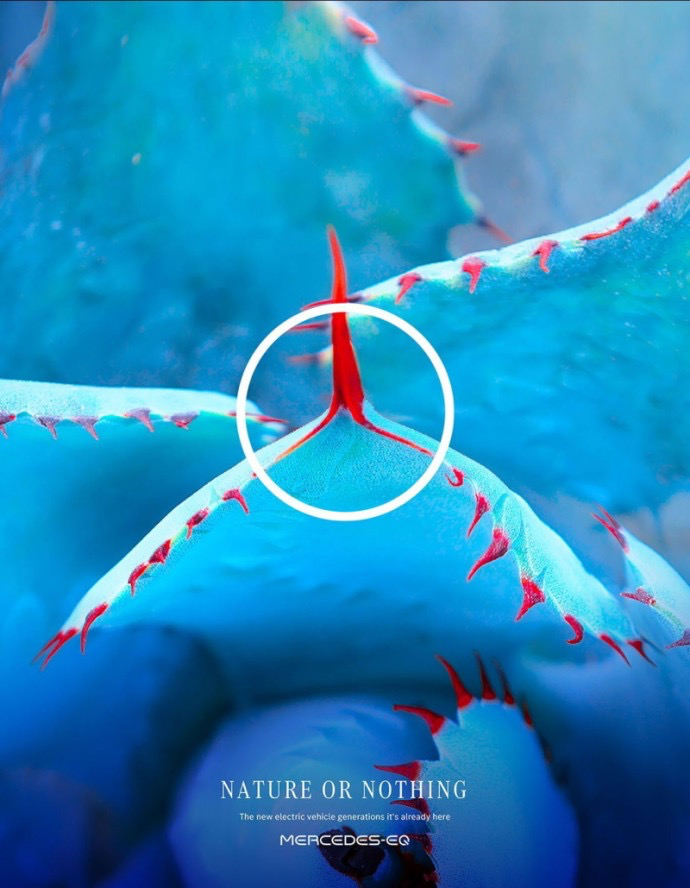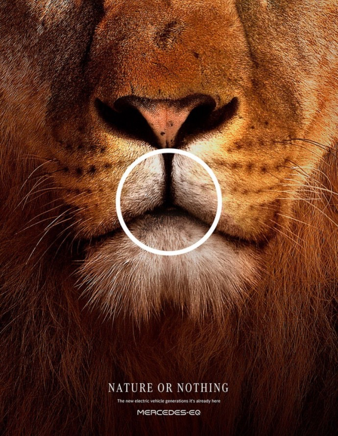今年5月,奔驰为推广全新的EQ100%纯电可持续发展汽车,邀请李奥贝纳广告打造了一系列主题为《Nature or Nothing》的广告片和海报,在拉丁美洲投放。