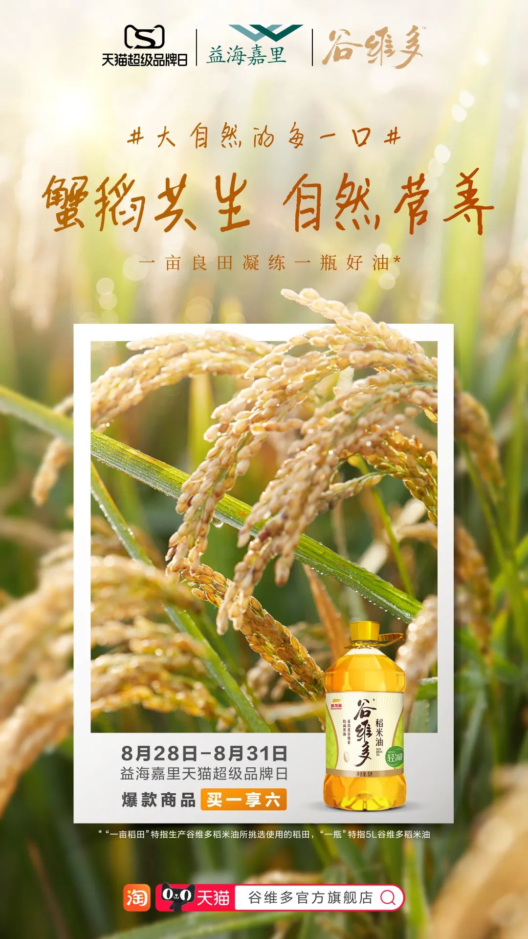 随着食品业和制造业的不断发展,大众能轻而易举地获取食物,这导致我们忘记了大自然真正的味道是多么的独特。“大自然的味道,每口都有不同的享受”益海嘉里基于这个洞察,携手天猫打造了粮油行业首个天猫超级品牌日活动,围绕#大自然的每一口#,真诚沟通消费者,开启一场粮油品牌营销的新尝试!