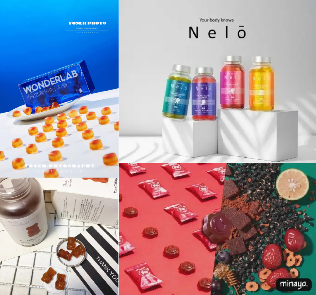 除了像汤臣倍健、Swisse等传统大牌,近年buffx、wonderlab、minayo、joliyoyo、nelo、超级零、薄荷健康等新锐品牌也纷纷杀入功能性软糖赛道,产品不仅资本看好,消费者也买账,均取得不俗成绩。
