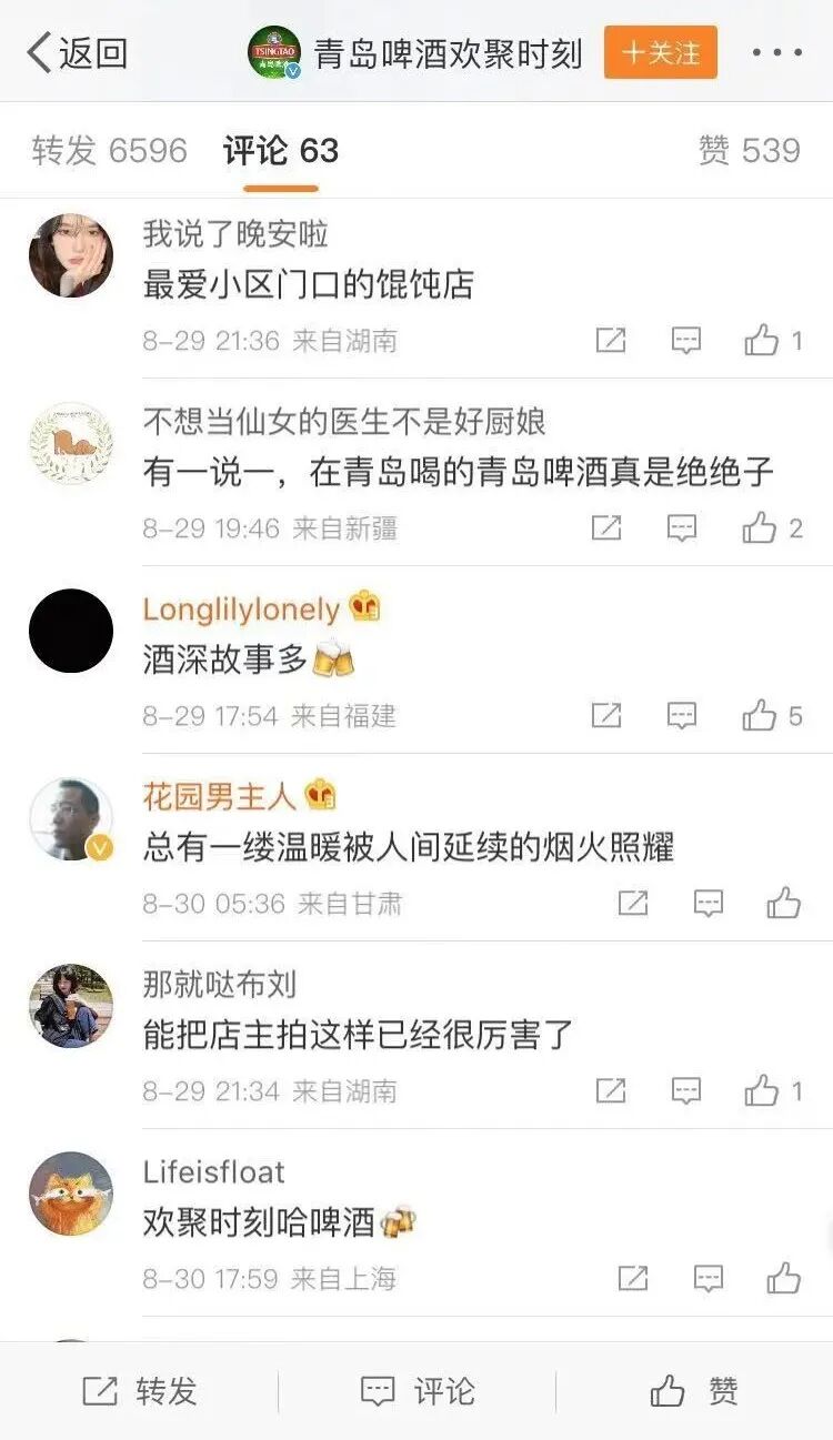 青岛啤酒精确捕捉到其产品消费人群的情绪痛点,以国潮大片的形式让消费者重温小店带给每个人的温情,给大众在这个快节奏压力大的社会中提供了有效的情绪性价值。