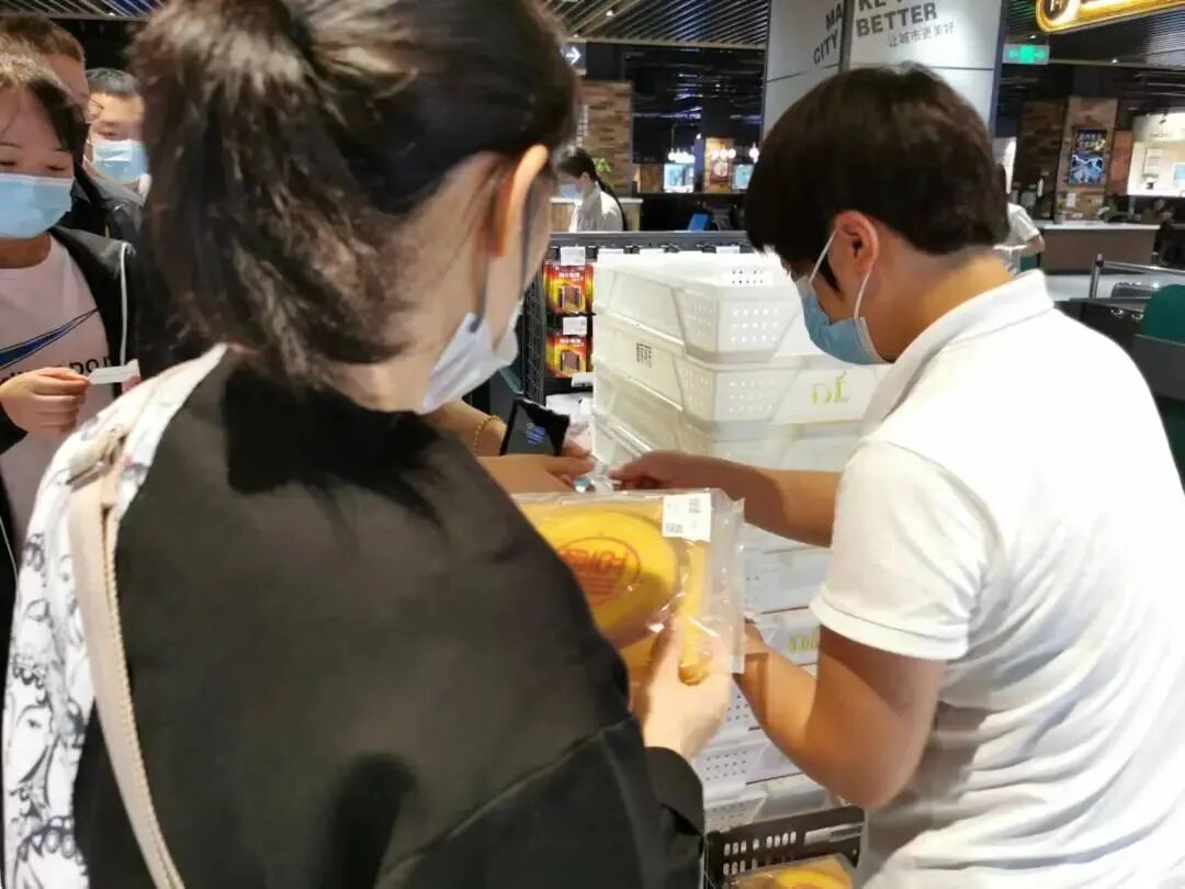 随着顾客的热情不断升温,胖东来大月饼迅速走红刷屏网络,遭到市场疯抢,更有很多顾客通宵排队,高价代购等买月饼。