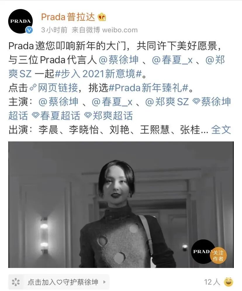 当然调侃归调侃,Prada屡屡凭解约捞金,反向操作致富固然是一种意外。但Prada视反向营销为流量密码,这点倒是真的。2021年1月Prada官宣郑爽时,一度引起争议,有人评价郑爽的形象不契合,而且Prada还和微商品牌共用一个代言人,岂不是会让品牌掉价:Prada变成Plowda。
