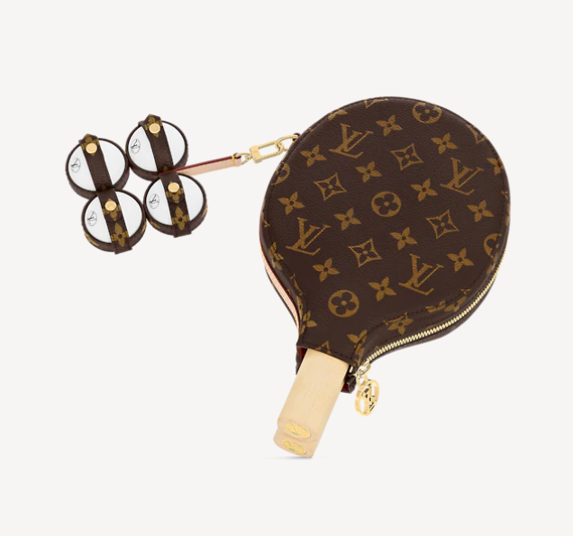 拍子是普通的木拍,球也是普通的球。当然,拍子底部和球的图案上都印着LV的标志,提醒LV的身份。