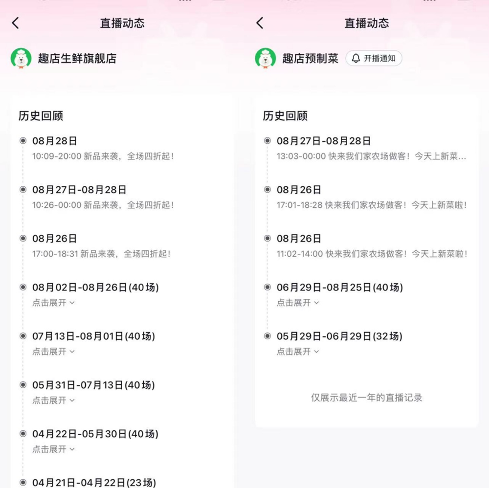 8月23日,趣店恢复直播。但职餐网发现,恢复不足两周后,抖音两大官方直播间“趣店预制菜”、“趣店生鲜旗舰店”再次停播,最后一次直播时间显示为8月28日。