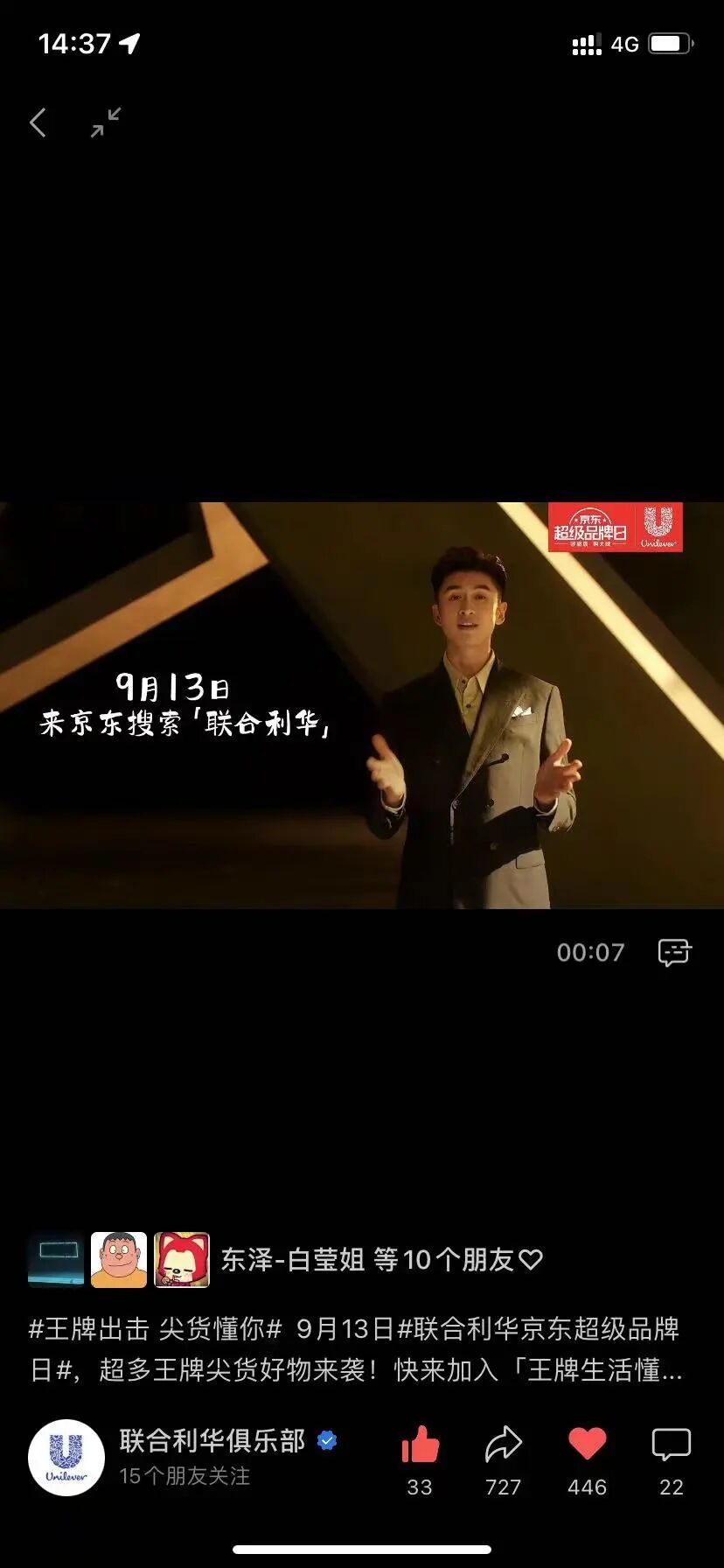 于是,在微博端,联合利华的主题定制大片,通过@张云龙mmc微博首发、再加上@京东、@有家就有联合利华强强助力,双方同步联动造势,引爆了网络流量。在粉丝群体的扩散下,不仅主题大片得到大范围传播,互动话题#王牌出击 尖货懂你#、#联合利华京东超级品牌日#同样引发了大规模热议。再加上联合利华集团各品牌官微的联合造势,营销达到了快速地破圈效应,触达了多元的消费圈层。