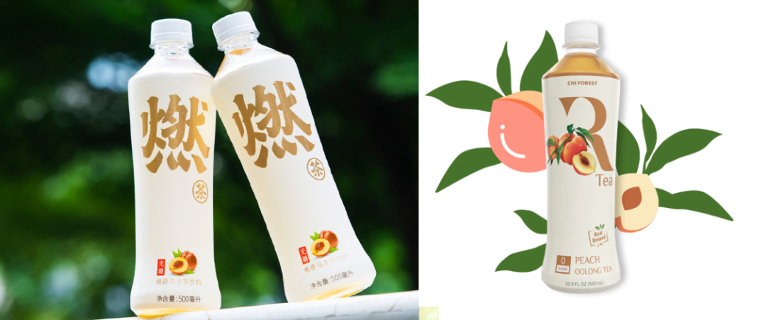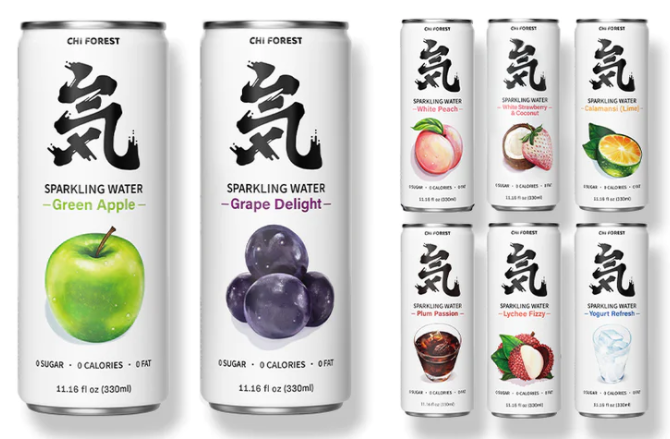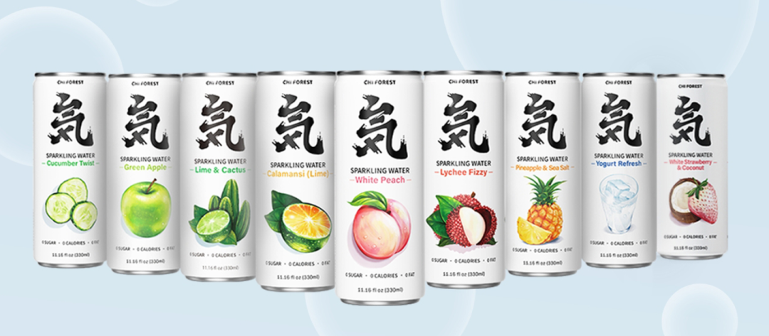 从元气森林海外的官网可以看到,品牌英文名为“CHI FOREST”。所以包装上,一面依旧保留了“気”的字体设计,另一面则换成了毛笔手写质感的“CHI”,使其在国外达到更易传播和阅读的效果。