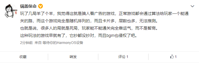 越挫越勇,加上正好通过碎片时间给大家提供了一个“摸鱼”机会,火也是必然的了,让1亿人欲生欲死,欲罢不能,这头羊确实有点东西。不过,简单的游戏往往带来的是一阵风的热度,热度之后,就会回归平静。今天的你还在挑战第二关么?还是尚未尝试,或者尝试了已经放弃了呢?
