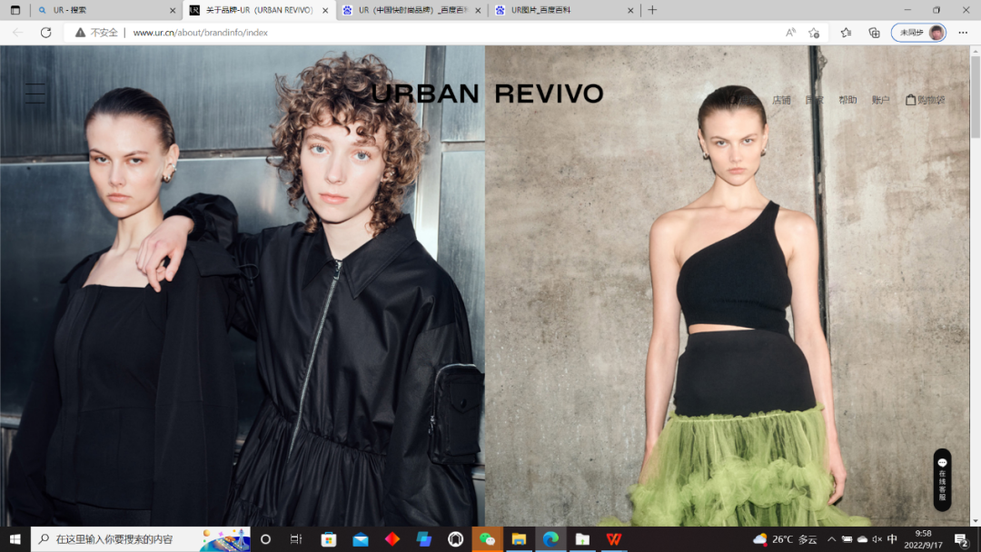 UR(URBAN REVIVO)是我国本土品牌快尚时装(广州)有限公司旗下品牌,由李明光在2006年创立,主要经营女装、男装、童装和配饰。