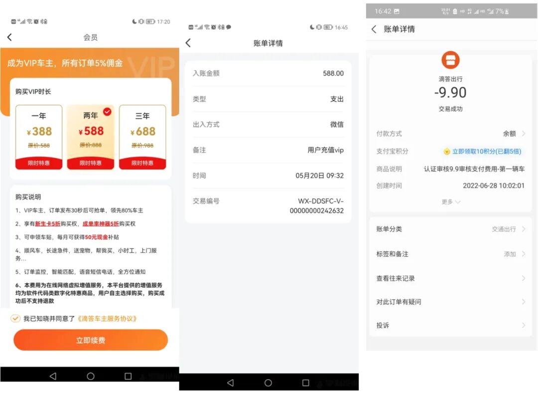 购买了588元VIP会员的陈鹏表示,“苹果和各大安卓商城都上架了‘滴答顺风车’,从标识和文字以及应用介绍,都碰瓷嘀嗒出行。”