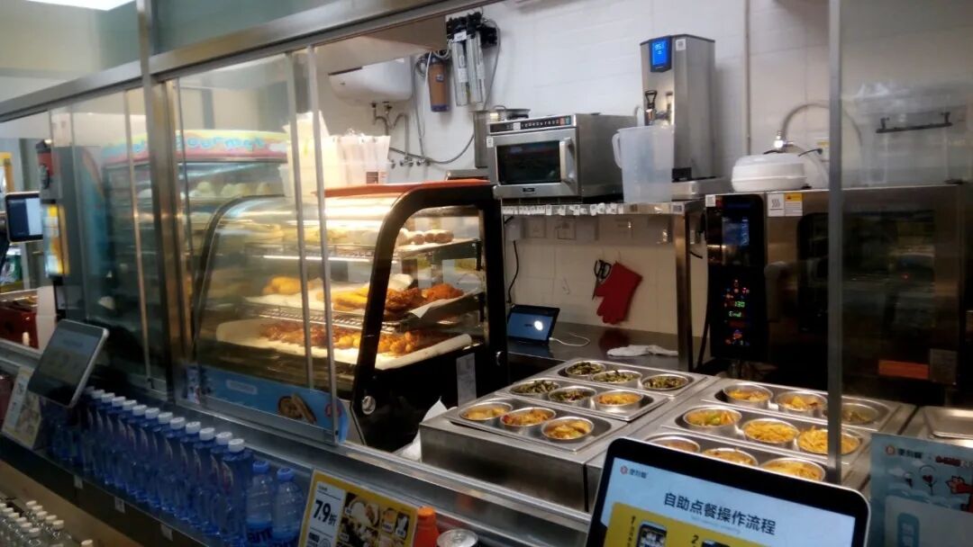 这些热餐,由中央厨房统一将切好的食材和调味品配送到各家店铺,便利店只需要按照生产计划,按时按量加工即可,在顾客点餐后装盒。2-3个菜品+米饭一起卖,平均客单价15元左右。