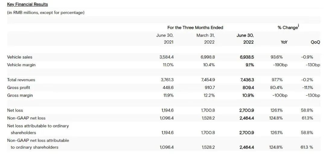 小鹏汽车2022Q2部分业绩数据,截图自财报