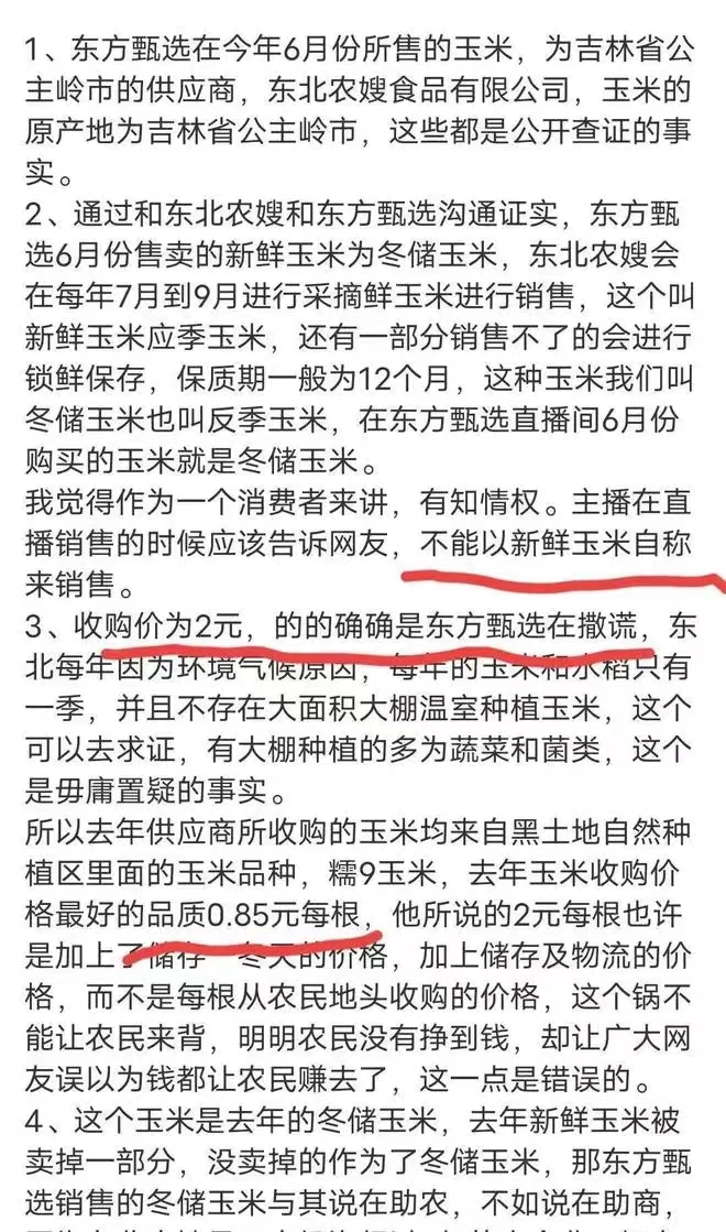 “东北农嫂”的突然背刺,对于东方甄选的打击可以说是致命的。此前辛巴和董宇辉之间的隔空喊话,还只是带货主播之间的同行battle,无非是抢夺客户群。但供应商直接曝光底价,实锤东方甄选40%的玉米利润,则让东方甄选一直以来的“助农”口号显得是自吹自擂。不仅如此,“东北农嫂”的更多爆料,也开始让董宇辉的一些发言站不住脚。