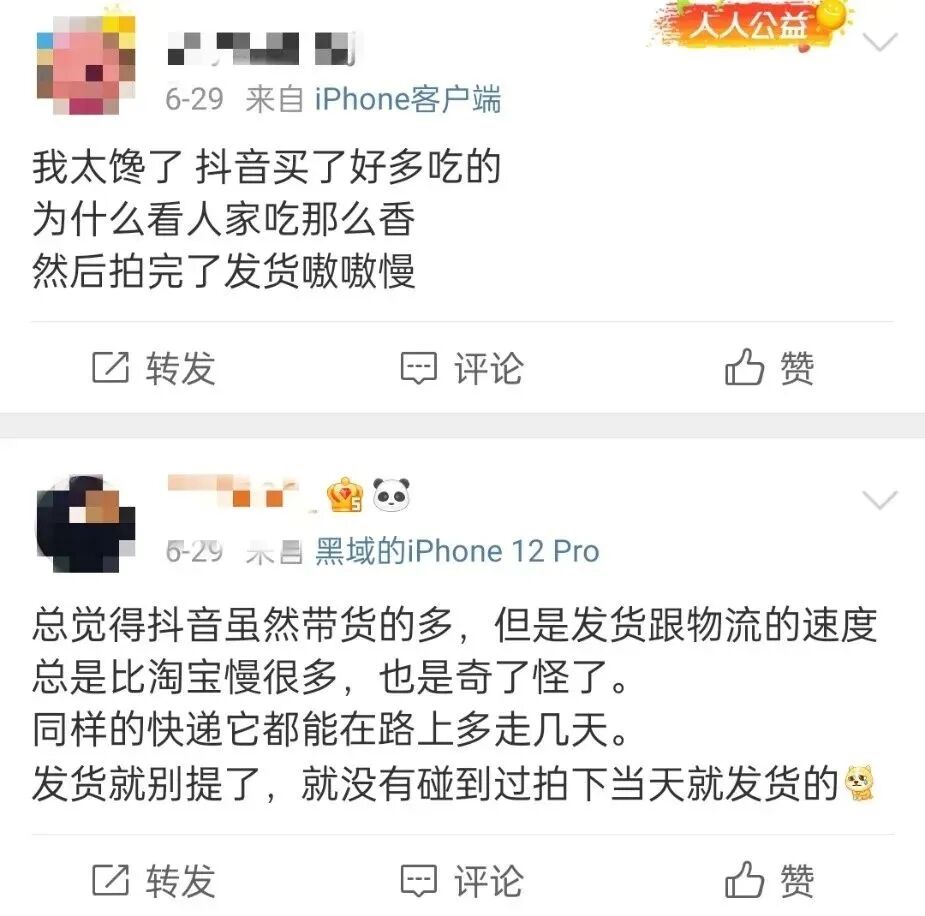 最常出现的情况是,直播间购买商品发货慢、同一家物流公司配送但速度却比不上其它平台等,物流配送服务严重影响了抖音电商消费者的购物体验。