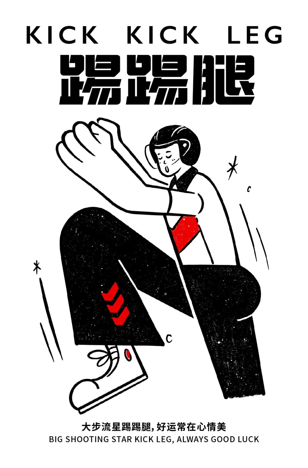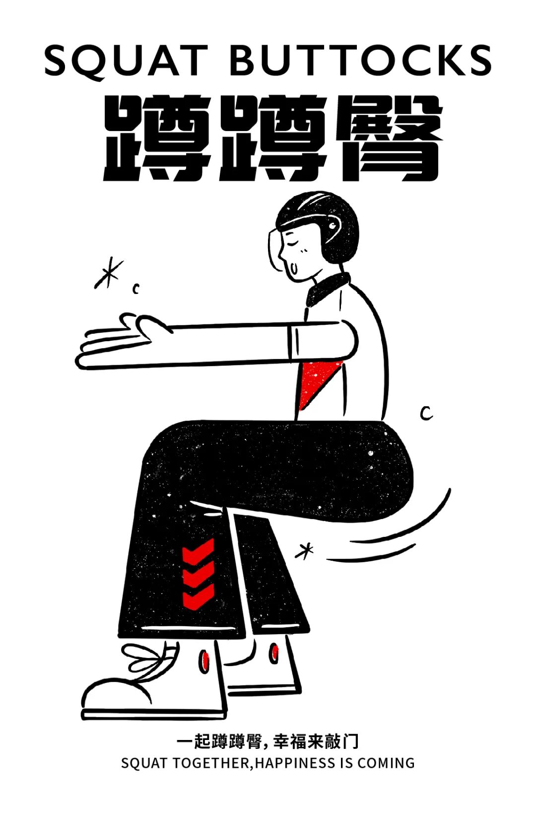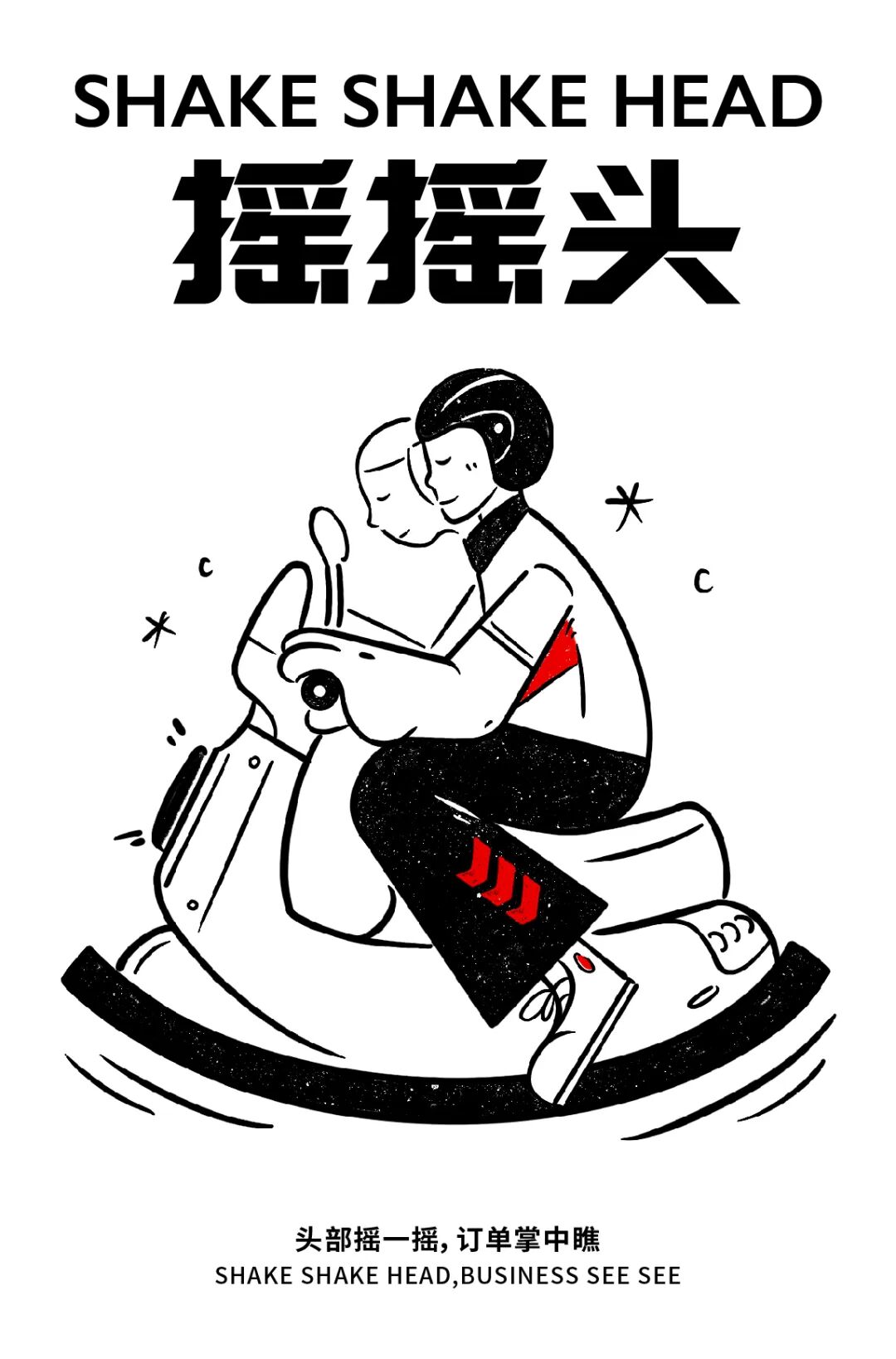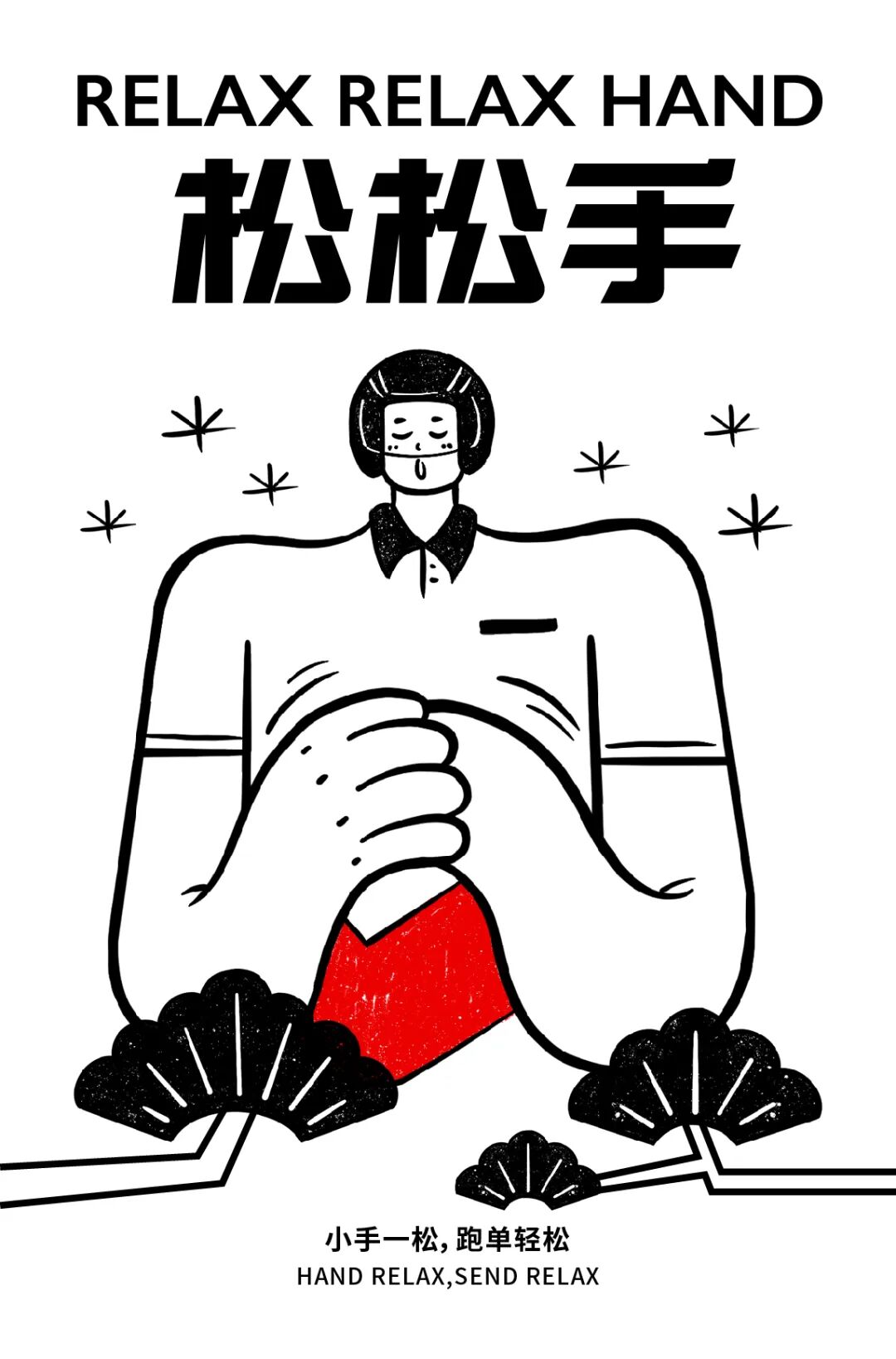 品牌以漫画的形式拆解了这套放松操,重点关注了头部、手部、腰部、腿部以及臀部这几个骑士日常最容易劳累的部位。除了视觉上的年轻化之外,手册上的文案也有不少可圈可点之处,比方说在“摇摇头”的那一页下方,先是用中文写上一段朗朗上口的口号“头部摇一摇,订单掌中瞧”,下面的英文翻译也是好记又魔性,那句脑洞大开的“shake shake head,business see see”不但让整个场景更有画面感,也让网友不由自主去翻看其他的翻译,给了大家反复回看的由头。