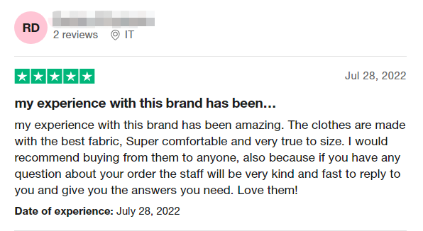 且每条评论下面都有官方的及时回复,这也许能让消费者更加肯定官方的服务态度。正如这位来自意大利的消费者留言,“衣服面料很好,非常舒适合身,我会推荐每个人都来买,不仅质量好,还因为我有任何疑问,客服都会及时友善地回复,感恩”。