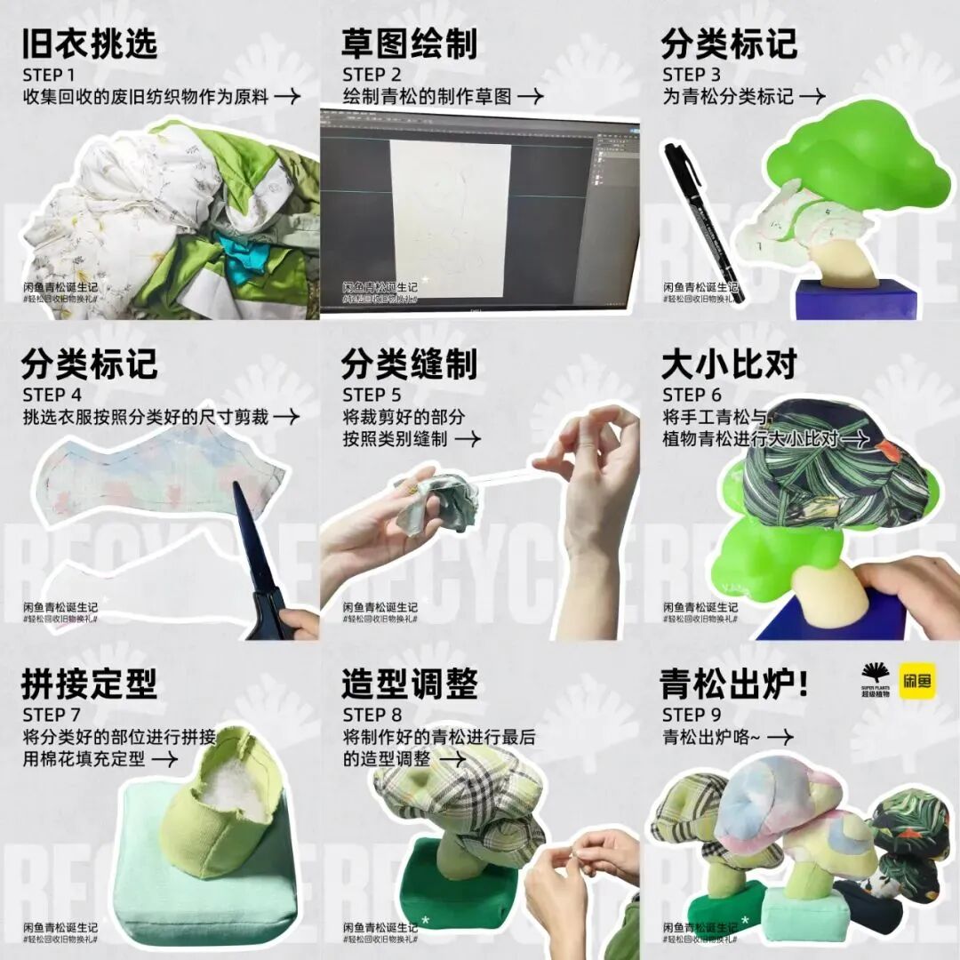 《超级符号》这本书中提出,如果想降低企业传播成本、消费者记忆成本,让更多人记住品牌,就需要将品牌的概念寄生于一个已经深入人心的符号,把一个不好理解的东西植入到消费者的脑海里,就是最快打开认知的方式。为了突出平台“轻松回收”这个优势,闲鱼用一个谐音梗,打造了一个青松挥手的超级符号——“青松挥手”盆栽,用视觉化的创意手法,强化受众心智。这一好礼则是由超级植物公司的艺术家手工制作的“放青松”盆栽,是利用回收来的旧衣物进行清洁消杀而制作,每一枚都独一无二,参与回收后则可领取这一助力低碳环保的“特别证书”。作为一个闲置交易app,与靠“设计”和“理念”出圈的超级植物公司此次的合作,将创意创新与绿色生活联合起来,延续了超级植物的”疗愈“理念,也变废为宝,为环保做贡献,还地球一片青松。只需轻松挥手,就能拥有“青松挥手”。获得青松的用户不仅能感受被治愈的快乐,更能体会旧物再利用的成就感。为了刺激更多用户,闲鱼打出了「回收之后换好礼」的奖励机制,用“环保青松”盆栽福利激发用户回收旧物的动力,以附加值驱动交易。参与「轻松回收」赢得积分还可以用来「旧物换礼」,换取日用品、盲盒及视听会员权益等。将回收过程中的废旧纺织物改造成了青松创意周边,更能展示旧物“可再生”循环利用一面,传递环保理念。每一件旧物的回收都是一次减碳行为的实践,将直接减少资源浪费。长期来看,更能培养用户养成回收习惯,打通可再生的、可持续的回收循环链路,助力环保事业。04