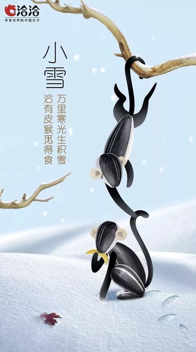 今天来看组不一样的24节气海报创意!洽洽的瓜子美学节气海报,用瓜子描绘自然风光和四时动物,既传递了东方美学又将产品玩出了新花样,古色古香的中国韵律和岁月静好的季节轮回,色调清新富有美感、视觉很是简约惊艳。