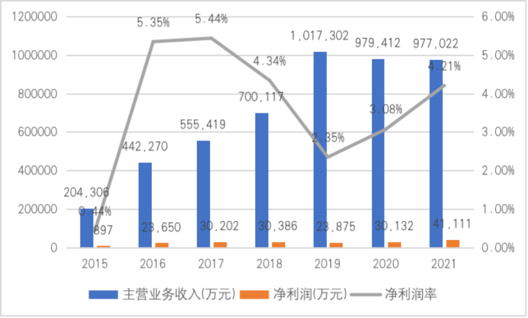 图 / 三只松鼠2015-2021年营收及净利润情况
