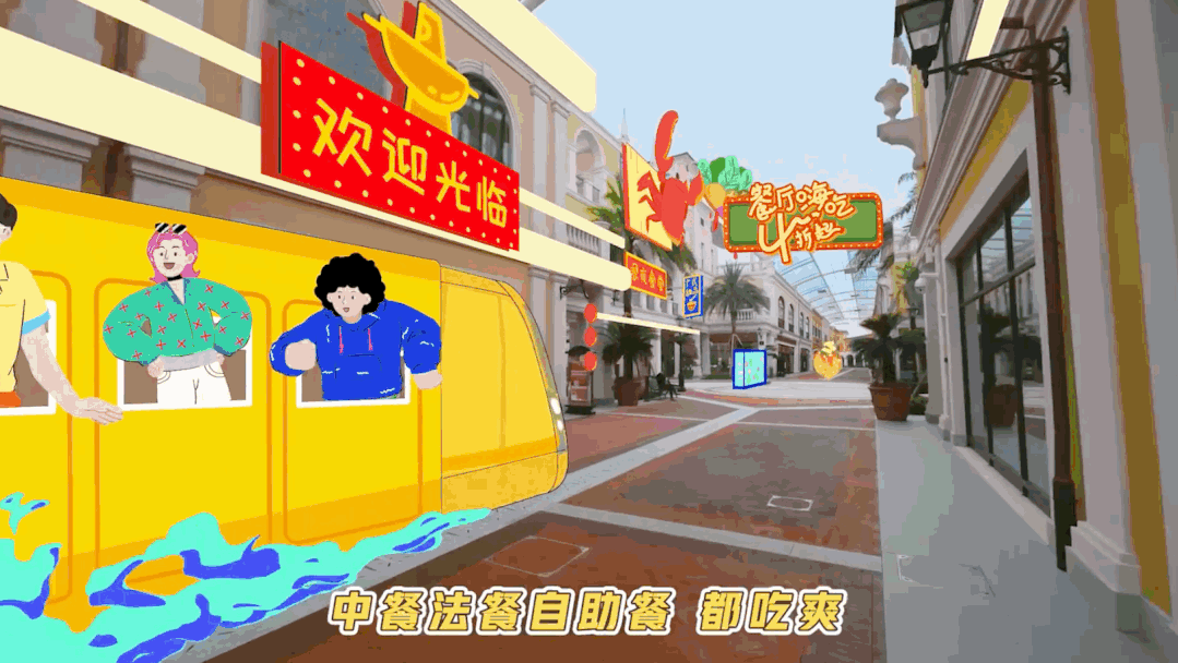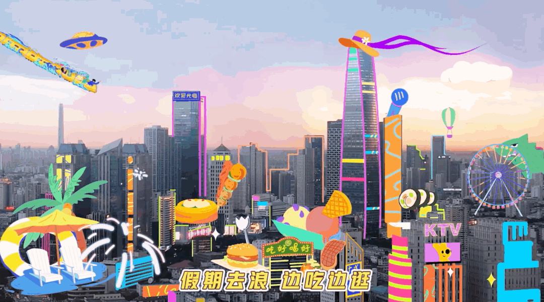 在这支创意视频里,列车带着乘客们“闯”入了各种不同的假期场景:各式美食餐厅、游乐园狂欢、K歌玩乐、宝藏酒店,让观众感受到点开美团就像登上假日列车,载着人们去到聚会/亲子/度假等场景中,在美团准备的丰富假日福利里尽情逛吃,并借势带出美食餐厅、景区门票、酒店民宿、休闲玩乐等十一逛吃逛吃周主推业务,强化美团到店业务心智。