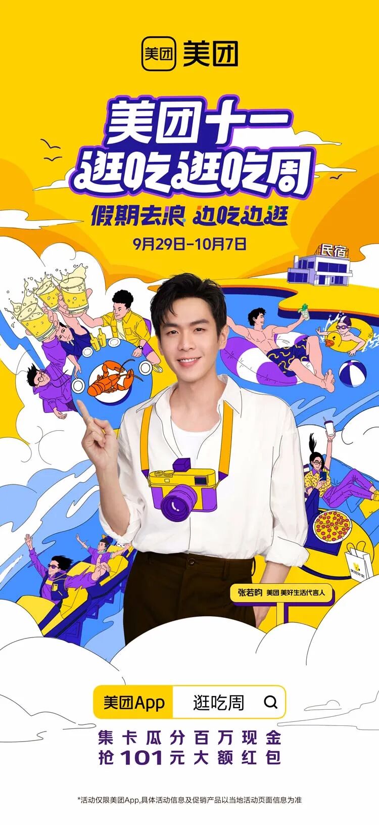 除了“造火车”,美团的“会玩儿”技能也在Social方面展露无遗,联动明星及主流平台达人们进行话题共创,用不同的创意形式安利美团站内活动,让十一上美团“逛吃逛吃”的概念深入人心。