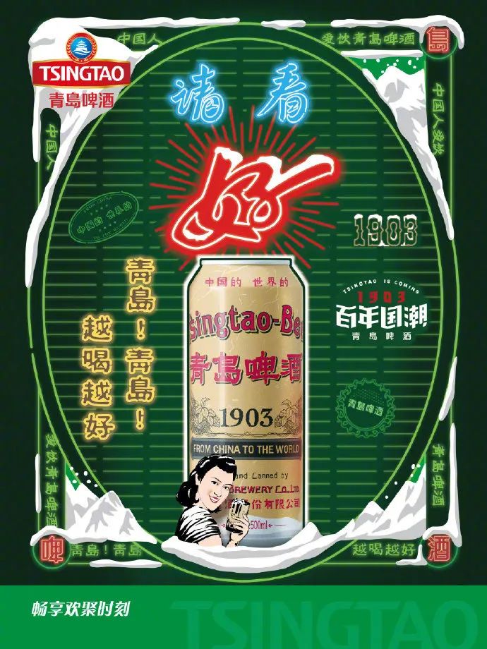 青岛啤酒一直深耕年轻文化,致力于探索年轻玩法,与Z世代玩在一块!例如推出百年国潮瓶、签约华晨宇、夜猫子啤酒、纽约时装周、赞助音乐节等,每一个玩法都直击年轻人心巴,尽显品牌鲜活姿态!