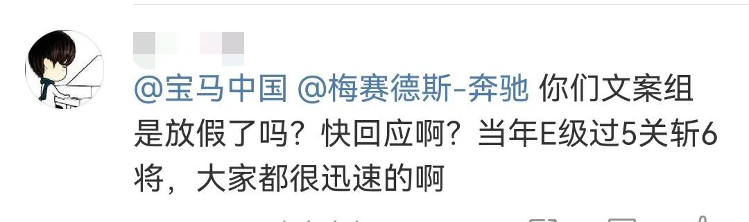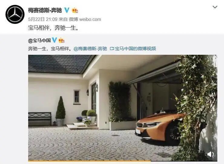 文案则是:“奔驰一生,宝马相伴”