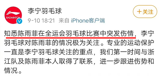 在第十四届全运会羽毛球比赛,奥运冠军陈雨菲比赛过程被李宁鞋划伤,而这款鞋就是来自李宁千元的“鹘鹰Ⅳ女子羽毛球专业比赛鞋AYAR006-2”。这款鞋子据说是使用名为“TUFF TIP”的鞋头耐磨材料,应用于鞋面脚趾处,可以防止鞋面过早磨损,结果保护了鞋面没保护好消费者的脚。