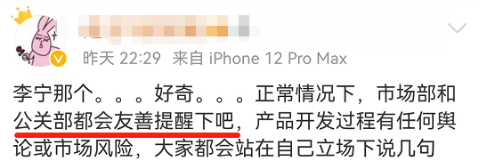 而另外一边的李宁,疑似电商总经理发圈圈出来回应,原话提到:“我们的消费者对于中国文化的沉淀,教育知识的传承还是少了”。