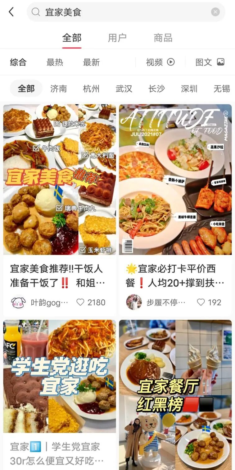 当然,社交媒体上关于宜家美食探店的内容更是层出不穷。例如在小红书上关于宜家美食的笔记有4万多条,抖音、快手上的视频播放量也动辄上百万。由此可见,宜家美食所带来的流量确实不容小觑。