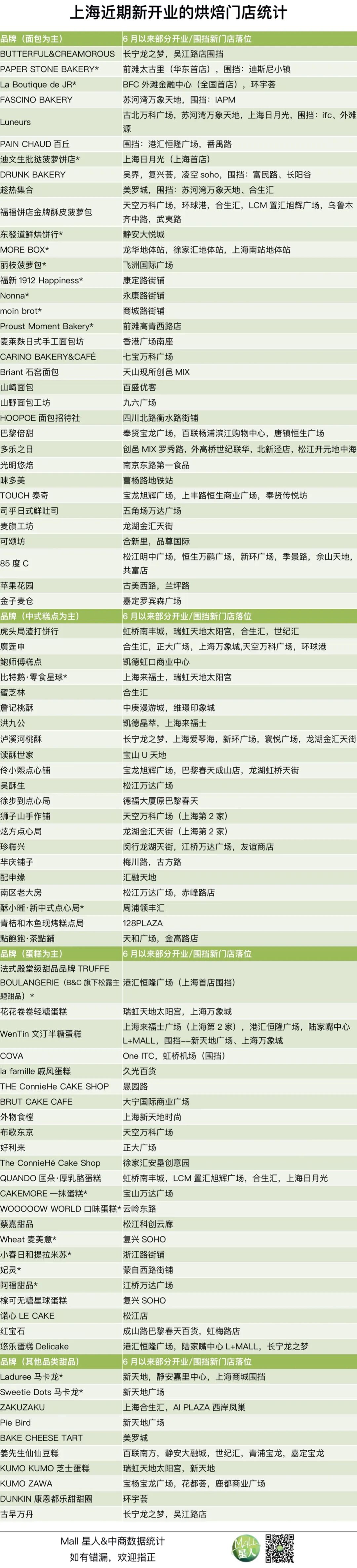 Mall星人发现,近期上海连锁烘焙品牌的确关了不少门店,但另一方面,半数连锁品牌自6月以来已陆续开出了新门店,更有10多个全新烘焙品牌开出了上海首店,例如PAPER STONE BAKERY(美心集团旗下高端烘焙品牌)、La Boutique de JR、东发道·鲜烘饼行、福新1912、MORE BOX、比特鹅。