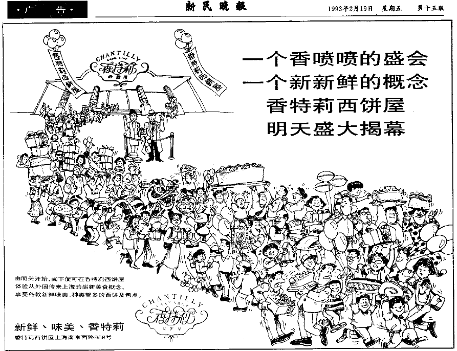曾经在上海辉煌过,但后来倒闭的烘焙店不计其数,有一些还能在上海烘焙简史上留下短暂的一笔,有些早已拂去了无痕。上图中的香特莉,是一家中新合资的西点店,1993年开业的那天,品牌邀请周润发主持开业剪彩仪式。2010年时还成为上海世博盛会特许商品生产商。如今,却已难觅踪影。在一丝不忍的怀旧回味中,我也说不清究竟是什么在推动着这些兴与衰。