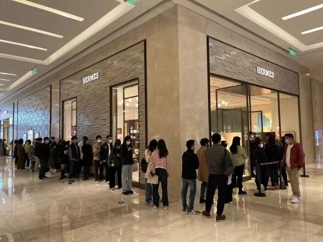 今年3月,爱马仕河南首店在郑州高端购物中心丹尼斯大卫城店开业,当日门店异常火爆,不少当地用户发帖记录下了开业当天的热闹场景,门店外排出长队,部分顾客在店外等待的时间甚至达到四小时之久。据当地媒体报道,开业首日爱马仕出动了18名销售人员,但依然无法满足接待需求。当天下午,箱包区域的产品已经接近无货,只剩下陈列商品;相框、纸镇、烟灰缸等日常用品也近乎售罄。