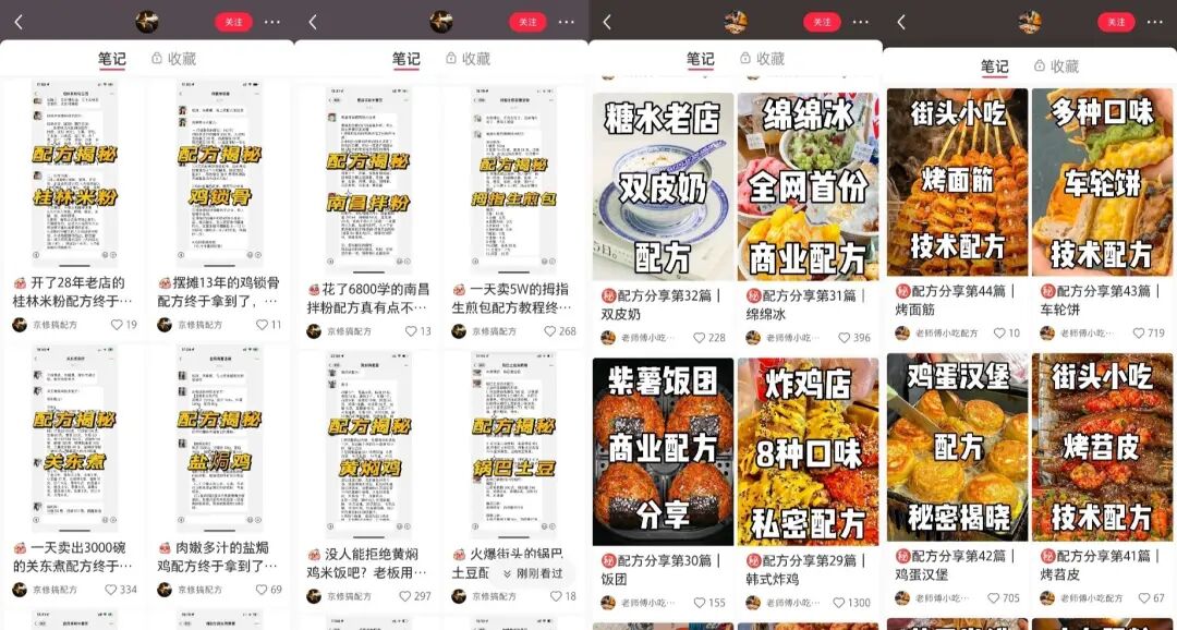 通州一个小吃夫妻店的老板告诉内参君,他开网红小吃,最开始就是从网上学来的。网络上有很多全套制作用料打包出售,大到烤炉灶台、小到竹签配件,一应俱全,社交平台上也有不少账号专门发网红小吃制作细则。纯靠面相消费者的内容,也能把小吃“支棱”起来。