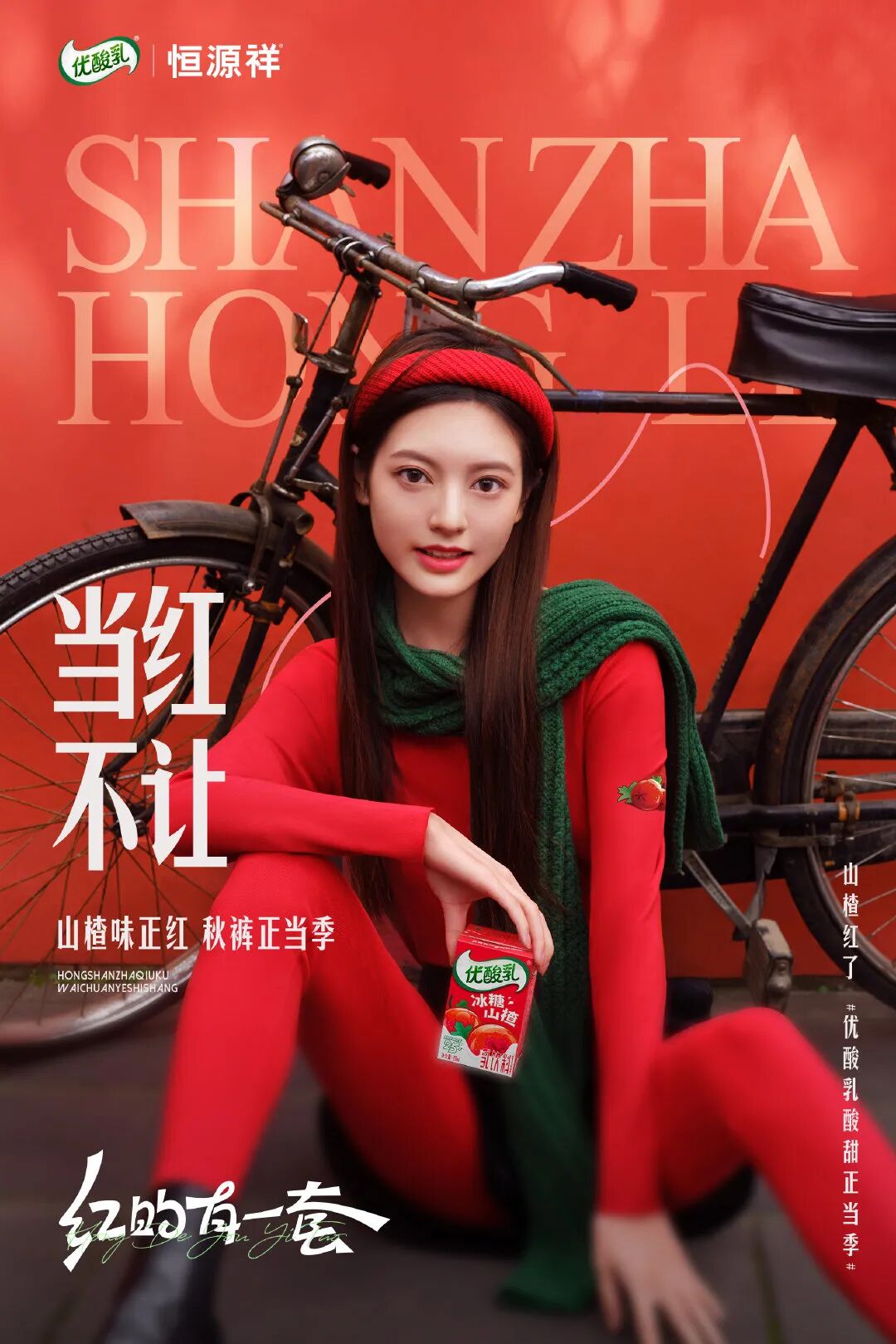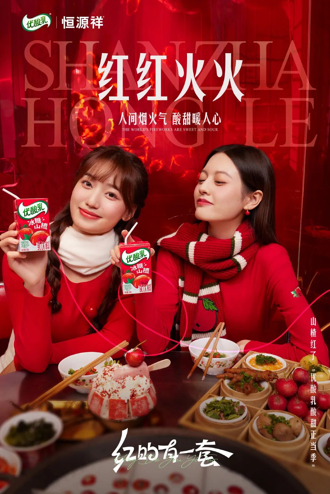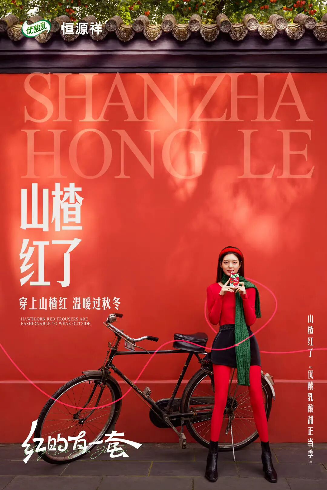 优酸乳还以“山楂红”为主题,发布了一组#红的有一套#主题时尚大片。市井烟火气的优酸乳冰糖山楂饮用场景,更贴近生活的真实感受,秋衣秋裤外穿炸街的时尚视觉冲击,以时尚潮感与市井烟火气的自然结合,传递出了“红运当头”、“红红火火”等美好寓意,在吸引了大量消费者关注和讨论的同时,也给他们带来了“一起红到底”的勇气和动力。