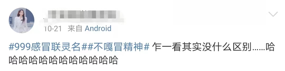 原本严肃正经的话题,因为词语使用错误,仿佛带上了地方口音表达,变得幽默而接地气。999感冒灵官微工作的小失误,给无聊的网络环境增添了一剂笑料,令大批网友闻风而来,纷纷在话题词条下留言打卡,获取快乐源泉。一次看似无心之过的“翻车”,让999感冒灵的宣传话题登上了热搜,讨论热度水涨船高,在一片哈哈哈的欢笑声中形成了独特的品牌印象记忆点,建立起大众对「不感冒精神」的认知,达成广而告之的宣传目的。999感冒灵另辟蹊径,以谐音梗为核心完成话题蓄水,截止发稿前,#不嘎冒精神#斩获了6275.3万阅读量,3.3万讨论量,这对于品牌营销宣传词条而言,无疑拿下“超常发挥”的佳绩。#不嘎冒精神#话题短时间内迅速实现强话题出圈,增加了999感冒灵和蕉内的品牌曝光,有助于提升联名产品的声量和热度,从而对后续普通用户的消费转化奠定了基础。03