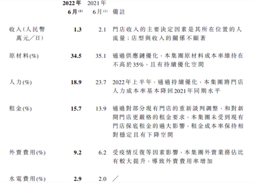 从奈雪2022上半年的单店数据来看,材料、租金、人力成本仍是大头,其中,租金成本的占比较去年同期更是进一步提高,三块成本加起来,占了门店收入的近7成。