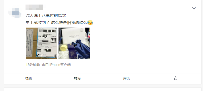 不少网友表示,“付完尾款刷新,直接显示已发货,申请退款也被拒了。”“买的斐乐鞋,付完尾款发现现在价格更低,想退款,但已经发货了退不了,只能收到货再说。”