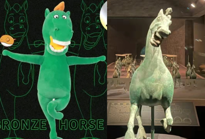 沈阳故宫的文创,也让头条哥联想到几个月前同样因为沙雕整活而大火的甘肃省博物馆的马踏飞燕,一个马,一个龙,属实是博物馆文创界的卧龙凤雏了。