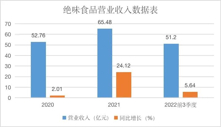 2022前三季度,绝味食品实现营收51.20亿元,同比增长5.64%。